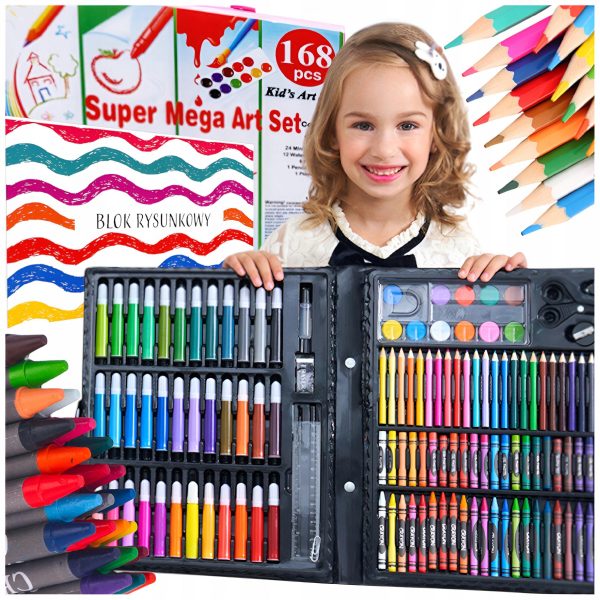 ZESTAW ARTYSTYCZNY DO MALOWANIA RYSOWANIA FARBY MAZAKI + BLOK A4 168 ELE.
