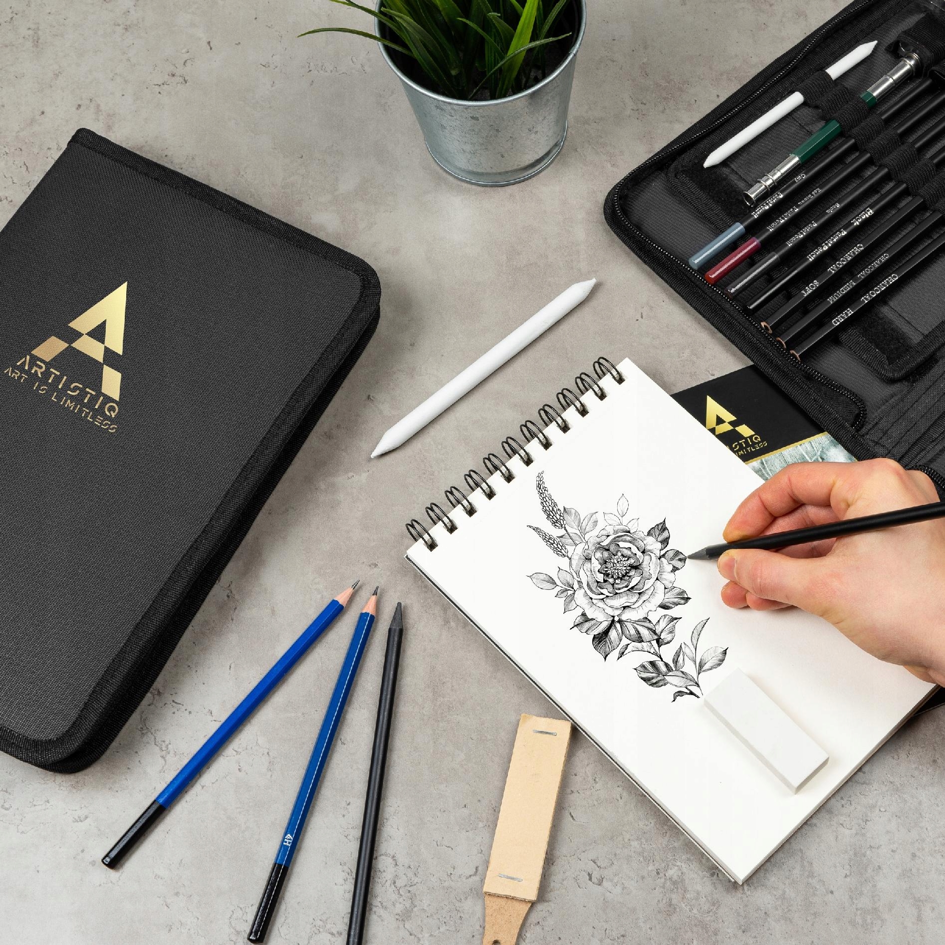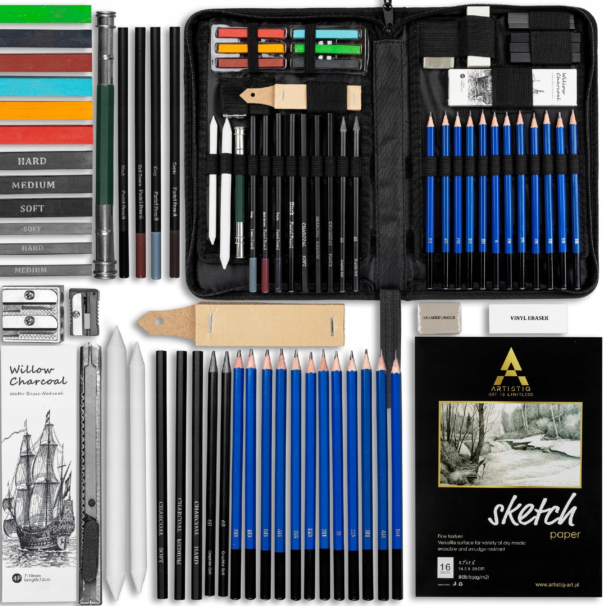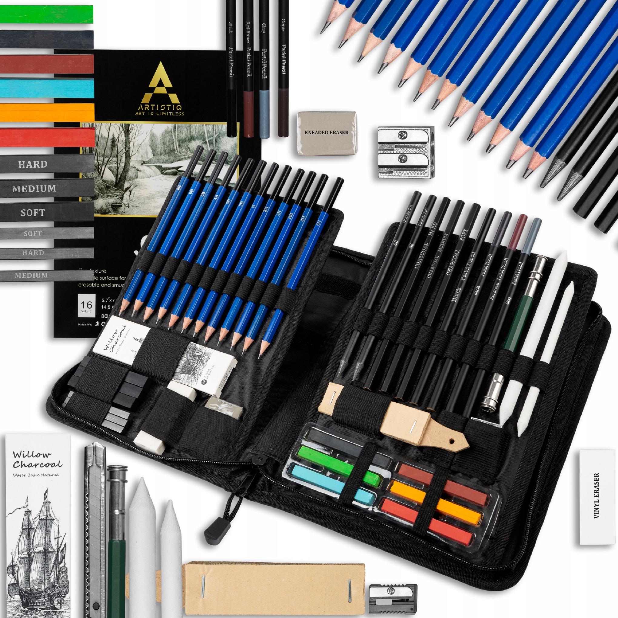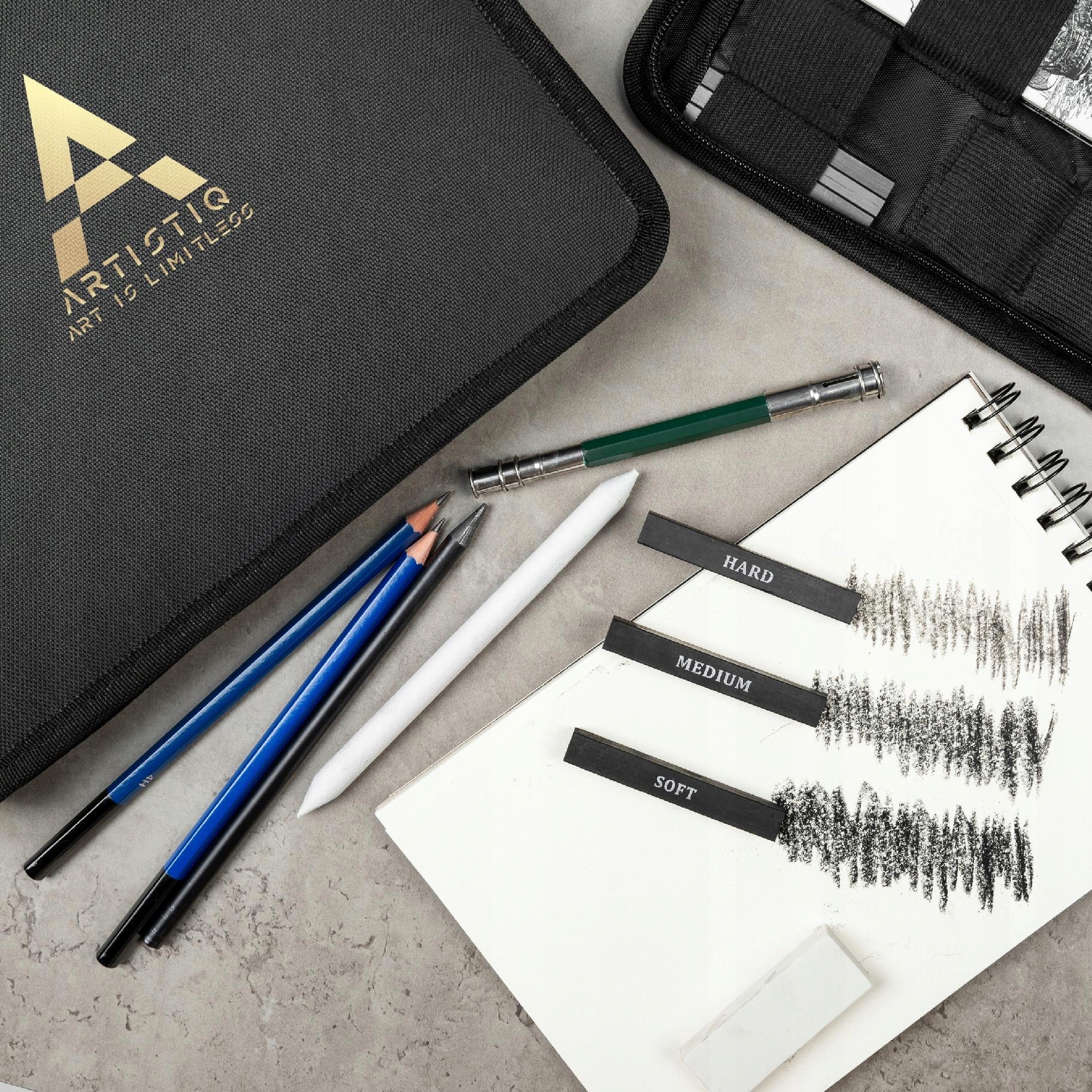 ✅ Profesjonalny zestaw ołówków i węgli wraz z niezbędnymi przyborami do szkicowania renomowanej marki ARTISTIQ.