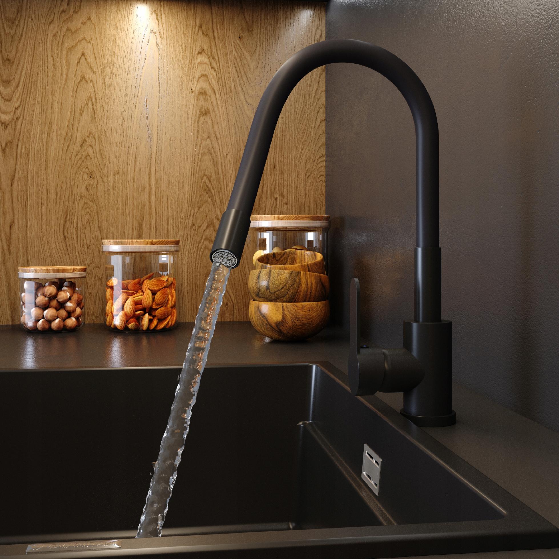 Nasza bateria kuchenna czarna to model nowoczesnej baterii kuchennej z elastyczną wylewką. Kran charakteryzuje się ponadprzeciętną funkcjonalnością, która zapewnia jeszcze większą wygodę w kuchni.