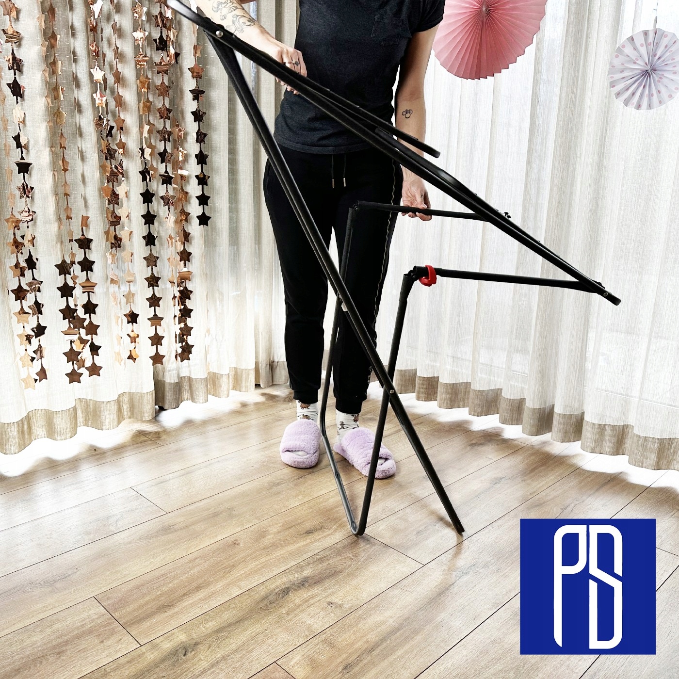 ☑️Łatwość Przechowywania – Kompaktowe Rozmiary po Złożeniu: Po złożeniu, suszarka zajmuje zaledwie niewielką przestrzeń (130 x 55 x 5 cm), co ułatwia jej przechowywanie w dowolnym miejscu.
