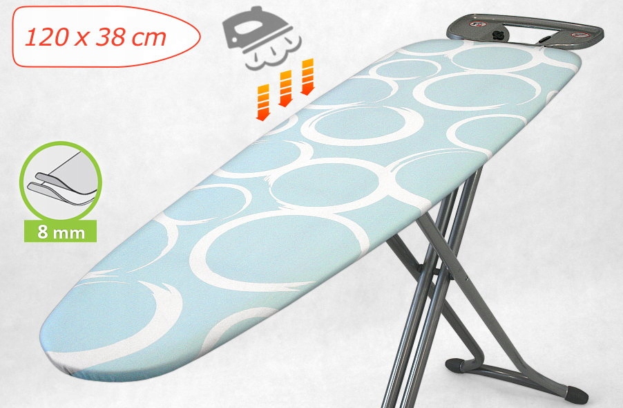 DESKA DO PRASOWANIA PRIME – BLUE CIRCLE Z GDNIAZDKIEM I UCHWYTEM NA ŻELAZKO