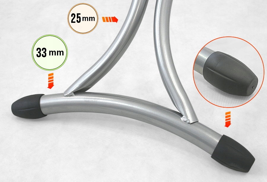 Lekka i Wytrzymała Konstrukcja: Nogi deski wykonane z rur o średnicy 25 mm sprawiają, że deska jest nie tylko lekka (6,2 kg), ale także wyjątkowo stabilna.