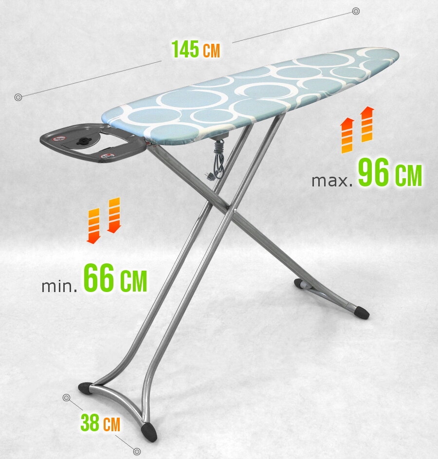 Regulacja Wysokości dla Komfortu ⬆️⬇️: Regulacja wysokości od 66 do 96 cm pozwala dostosować deskę do swojego wzrostu, gwarantując wygodę podczas prasowania.
