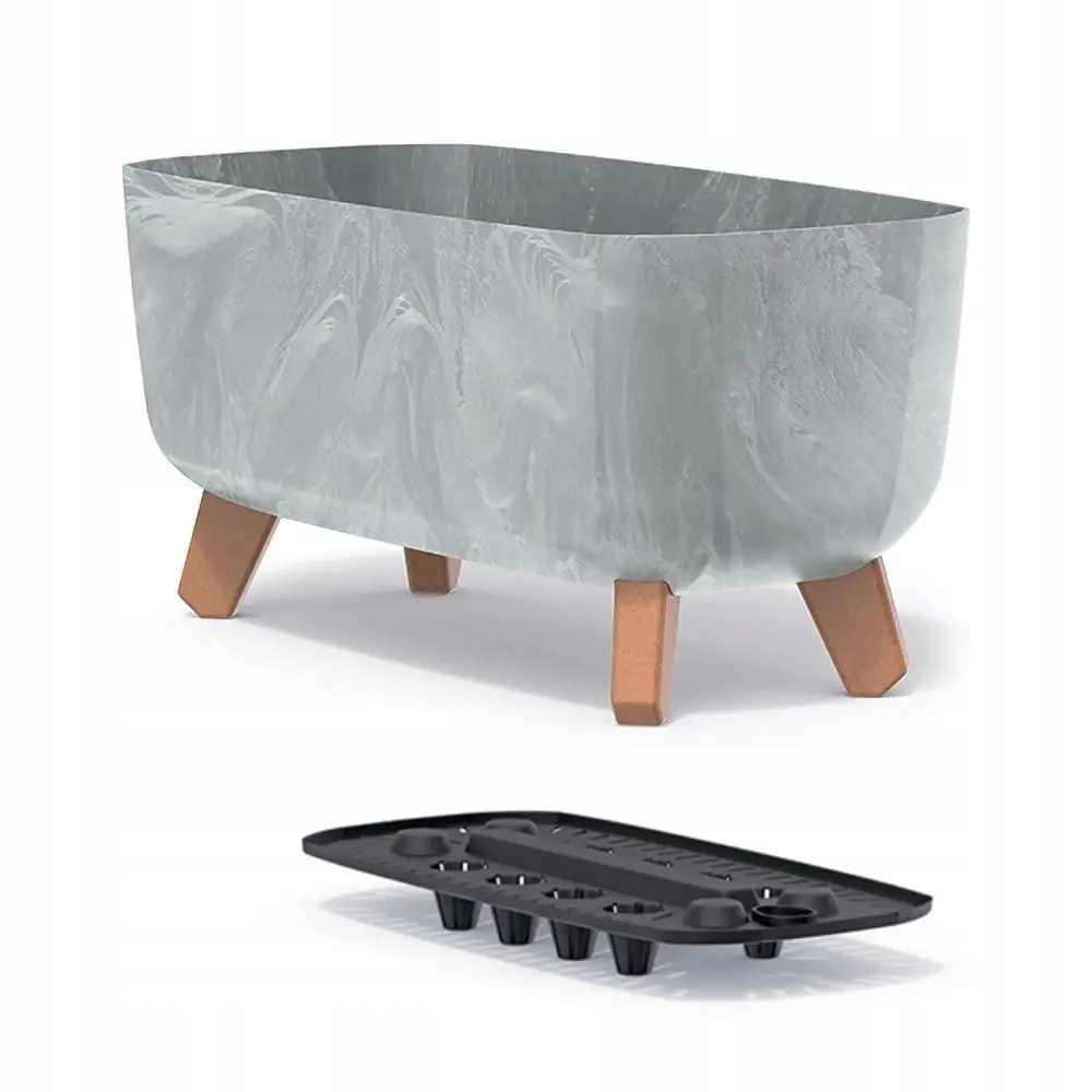 • Materiał: Tworzywo sztuczne (imitacja betonu) + drewniane nóżki