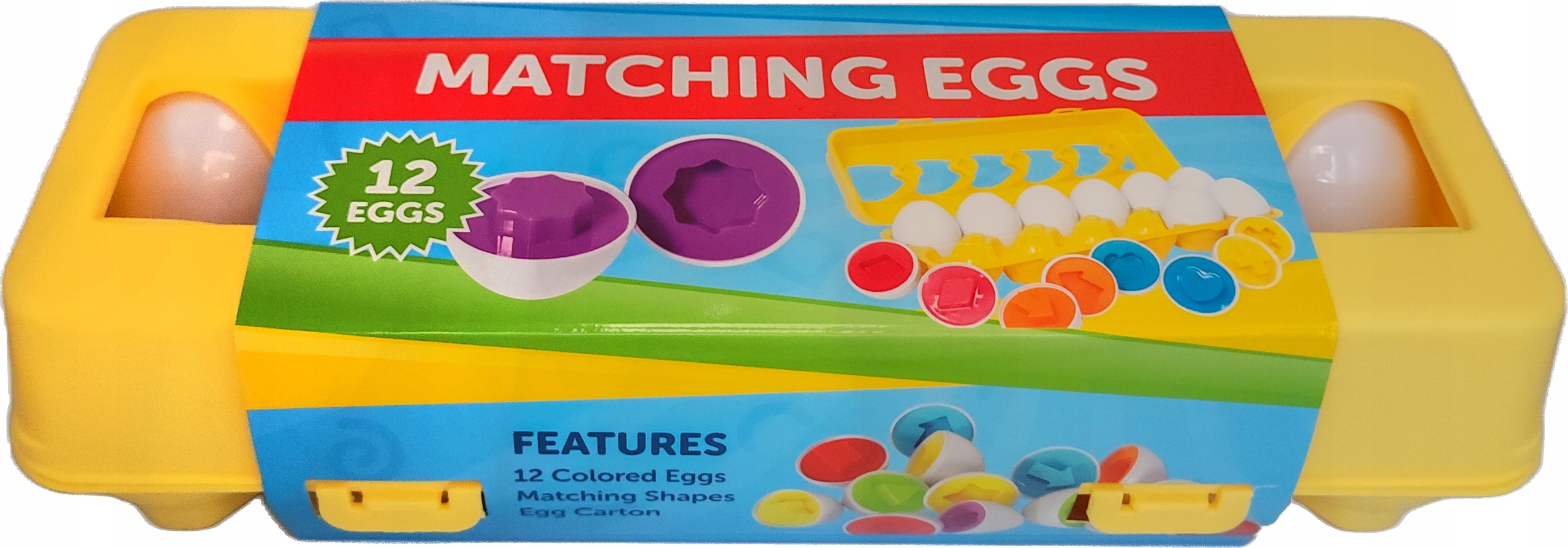 Zabawka to 12 jajek składających się z 24 elementów, które można rozdzielić na dwie części. Zabawa w dopasowywanie kształtów i kolorów pobudzi logikę, kreatywność i zdolności manualne.