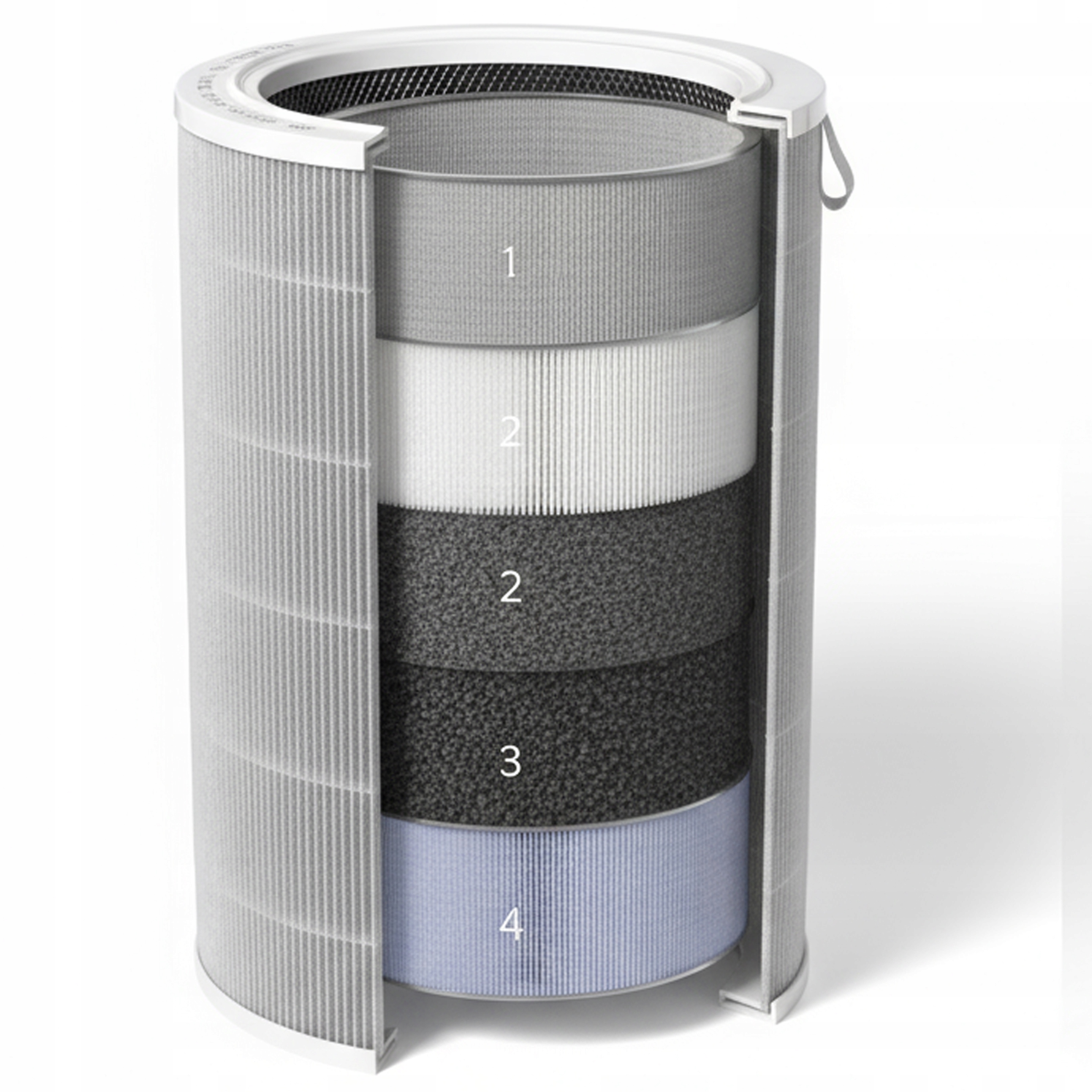 Filtr 4w1 składa się z czterech warstw, które wspólnie tworzą barierę dla zanieczyszczeń i bakterii: