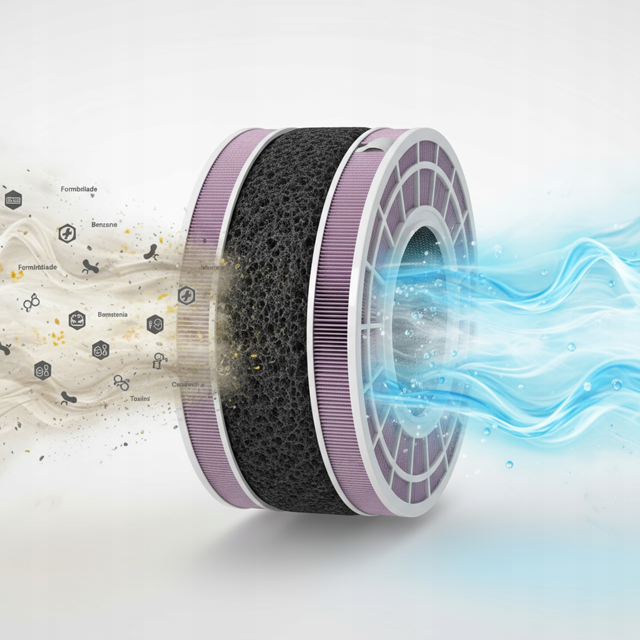 Zatrzymuje kurz, pył PM2.5, zarodniki pleśni, roztocza i pyłki roślin – idealny dla alergików i mieszkańców miast.