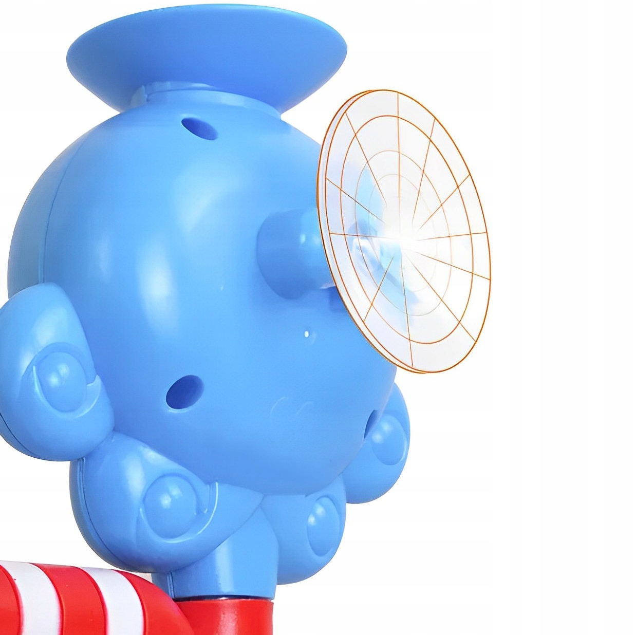 Wystarczy wlać wodę do otworów u góry zabawki. Woda przelewając się przez elementy zabawki wprowadzi w ruch oczy, rozgwiazdę jak i wiatraczek. Dodatkowo wylewając się z zabawki utworzy mini wodospad – fontannę, co także zaciekawi malucha⛲