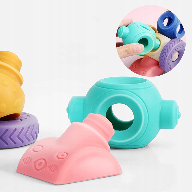 KLOCKI SENSORYCZNE MIĘKKIE GUMOWE KONSTRUKCYJNE KREATYWNE UKŁADANKA 13 EL.