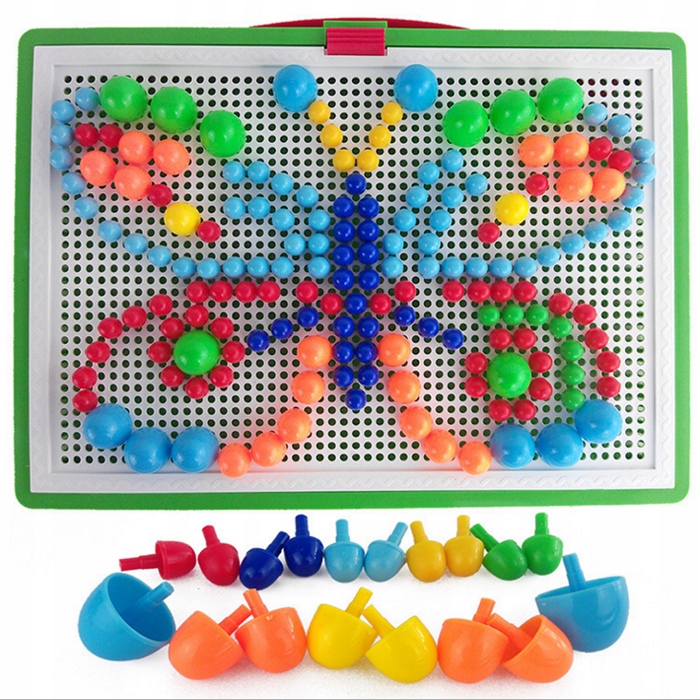 Zestaw zawiera 296 elementów, w tym różnokolorowe, różnej wielkości grzybki, które można wpinać w specjalnie zaprojektowane tablice z otworami. To rewelacyjne połączenie konstrukcji, układanki i eksperymentowania, które zapewni długie godziny fascynującej zabawy i twórczego rozwoju.