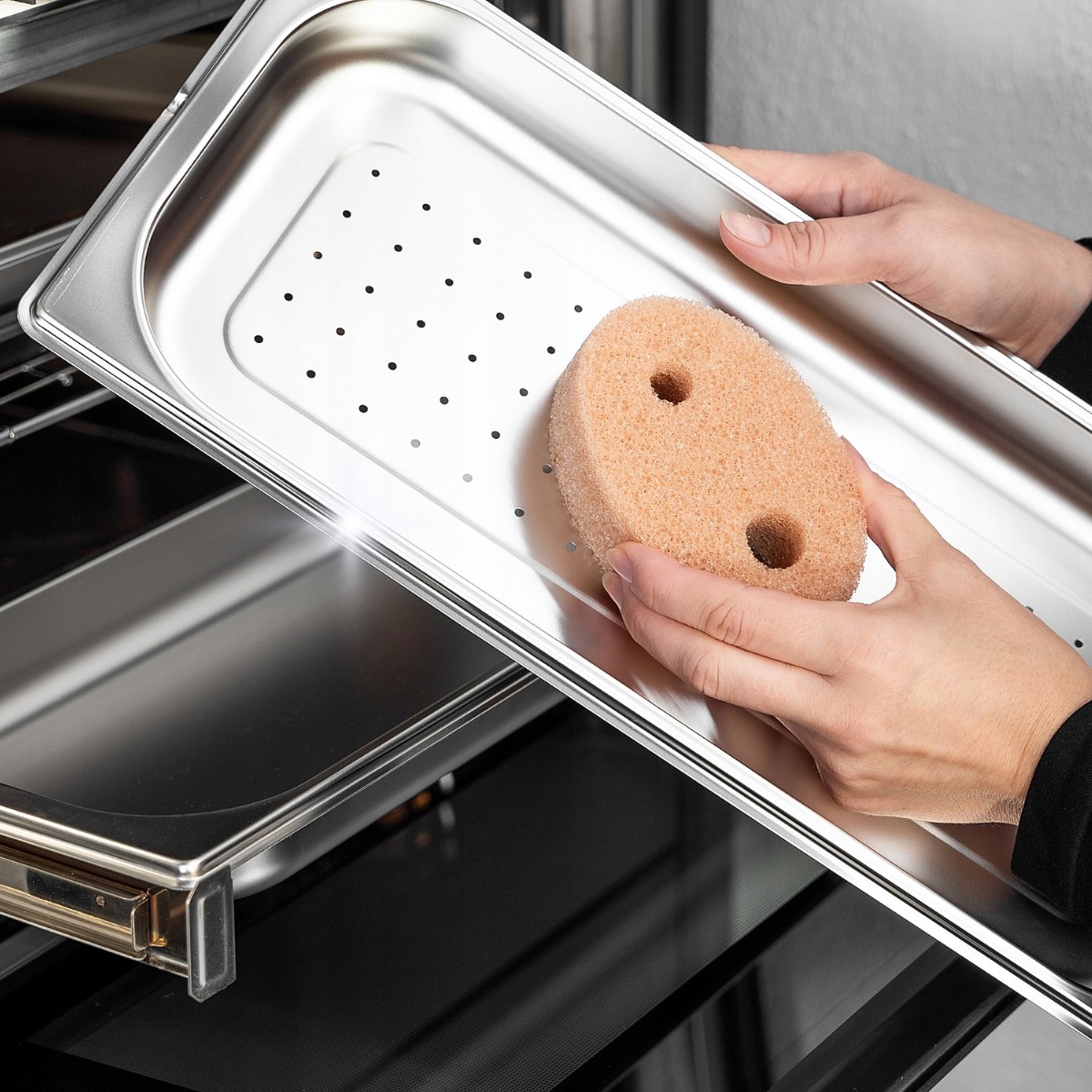 Dzięki temu masz dwie gąbki w jednej – szorstką do ciężkich zabrudzeń i miękką do codziennego mycia.