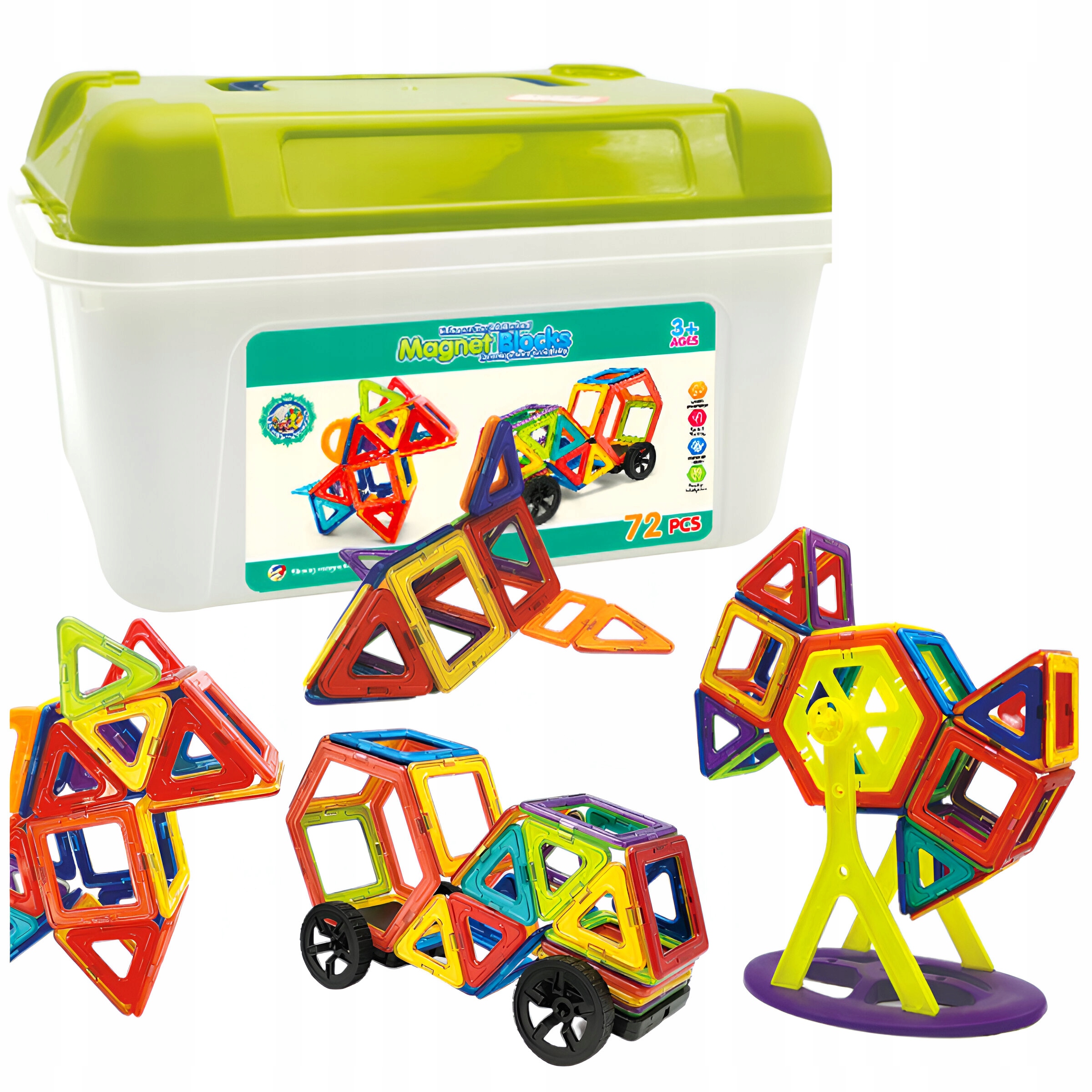 MAGNETYCZNE KLOCKI KONSTRUKCYJNE EDUKACYJNE NAUKA ZESTAW DLA DZIECI 72 ELEMENTY – ZŁÓŻ SWOJĄ WYMARZONĄ KONSTRUKCJĘ