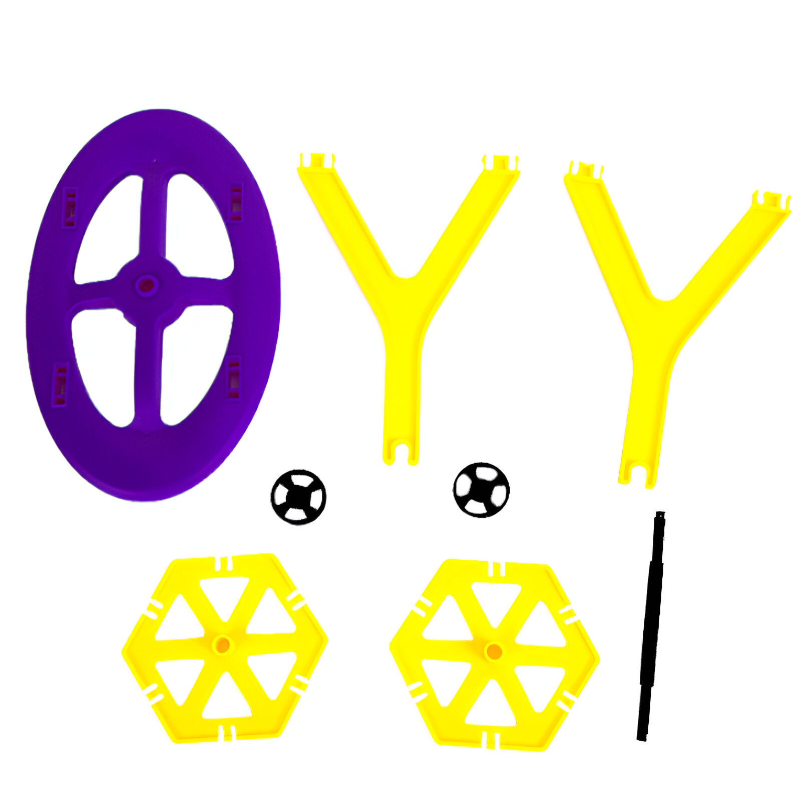 - Liczba elementów: 72 (18 trójkątów, 24 kwadraty, 2 sześciany, 6 prostokątów, 22 łuki, 4 kółka, 2 osie i młynek z podstawą)