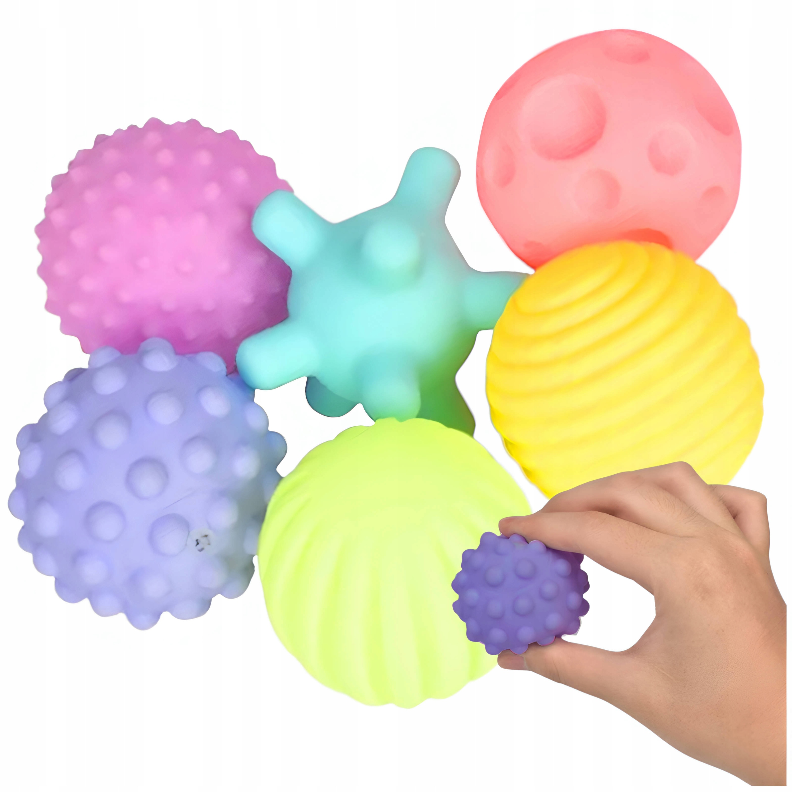 • Miękkie piłeczki o różnych kolorach i fakturach
