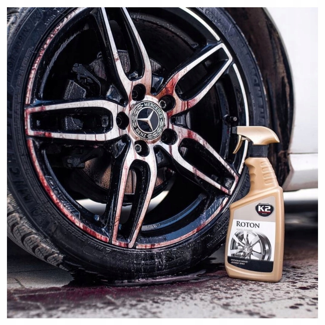 K2 ROTON w spektakularny sposób usuwa wszelkie uporczywe zabrudzenia, w tym osad z klocków hamulcowych i zabrudzenia drogowe, czego efektem jest zabarwienie naniesionego płynu na czerwono. Mycie felg za pomocą płynu jest szybkie, efektywne i skuteczne i nie wymaga wysiłku. Brud jest usuwany bez ryzyka zarysowania czyszczonej powierzchni.
