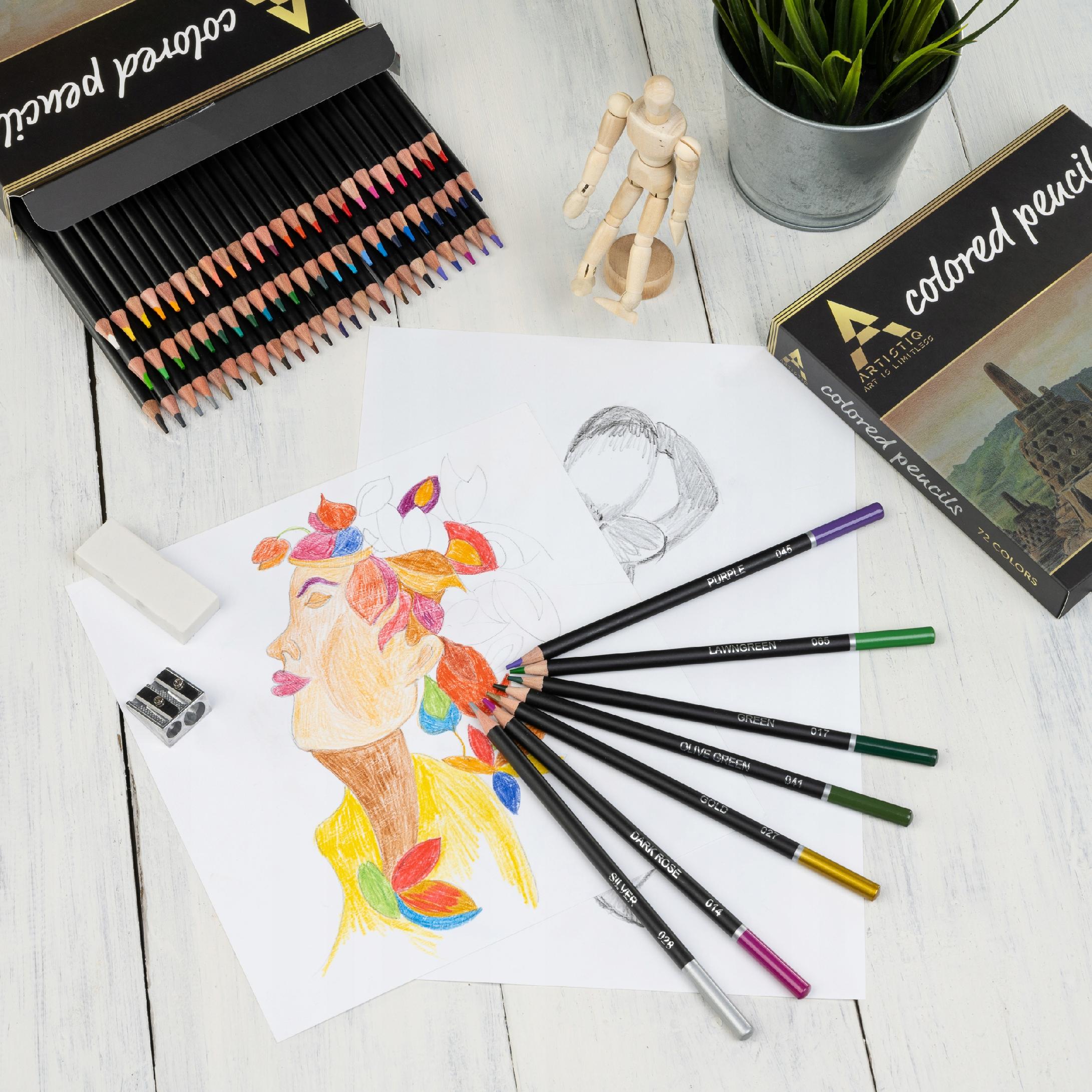 Zestaw kredek artystycznych pozwala na tworzenie mocnych dokładnych linii, delikatnych cieni oraz pokrywanie większych powierzchni papieru.