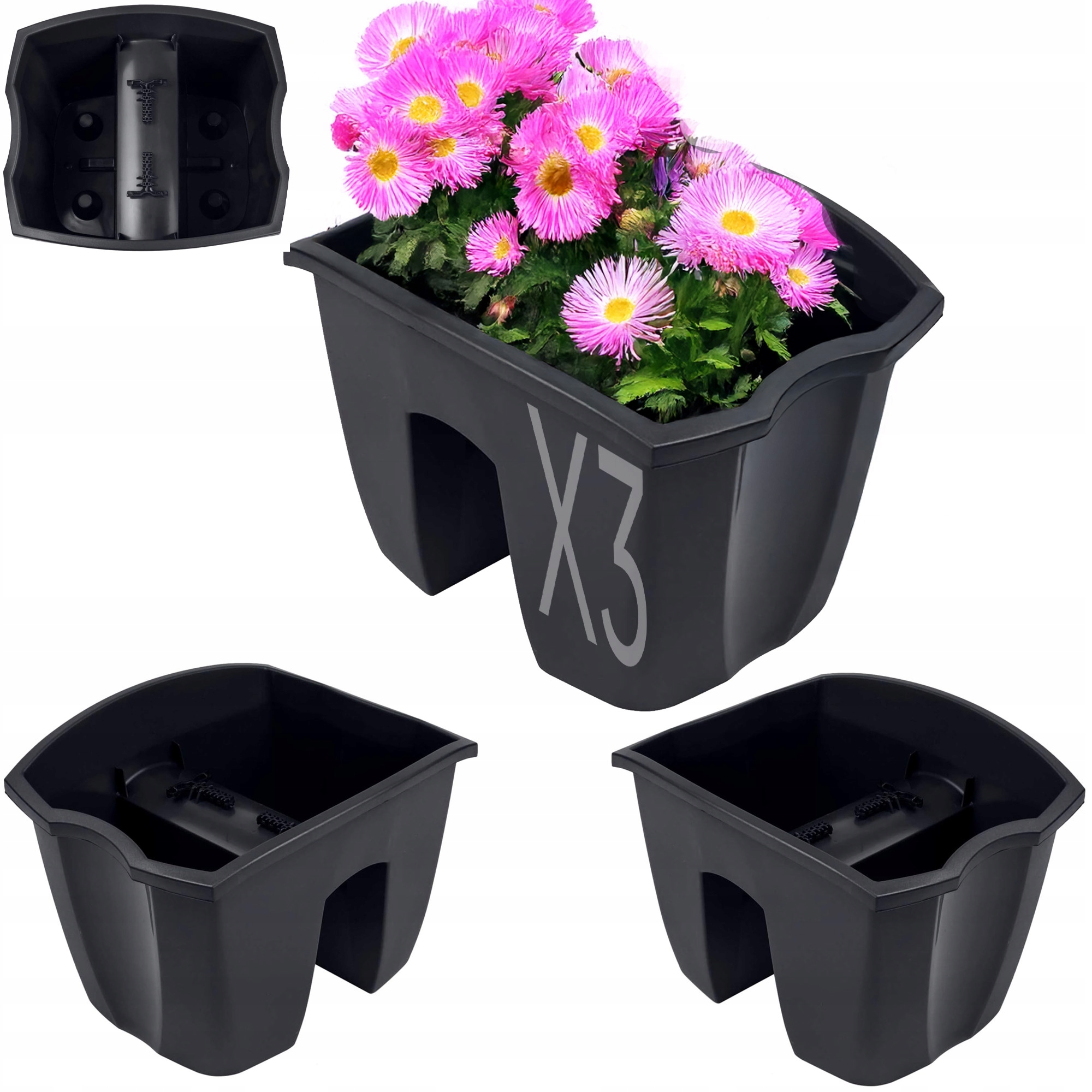 ZESTAW TRZECH DONICZEK DONIC NA BALUSTRADĘ BALKON CZARNYCH