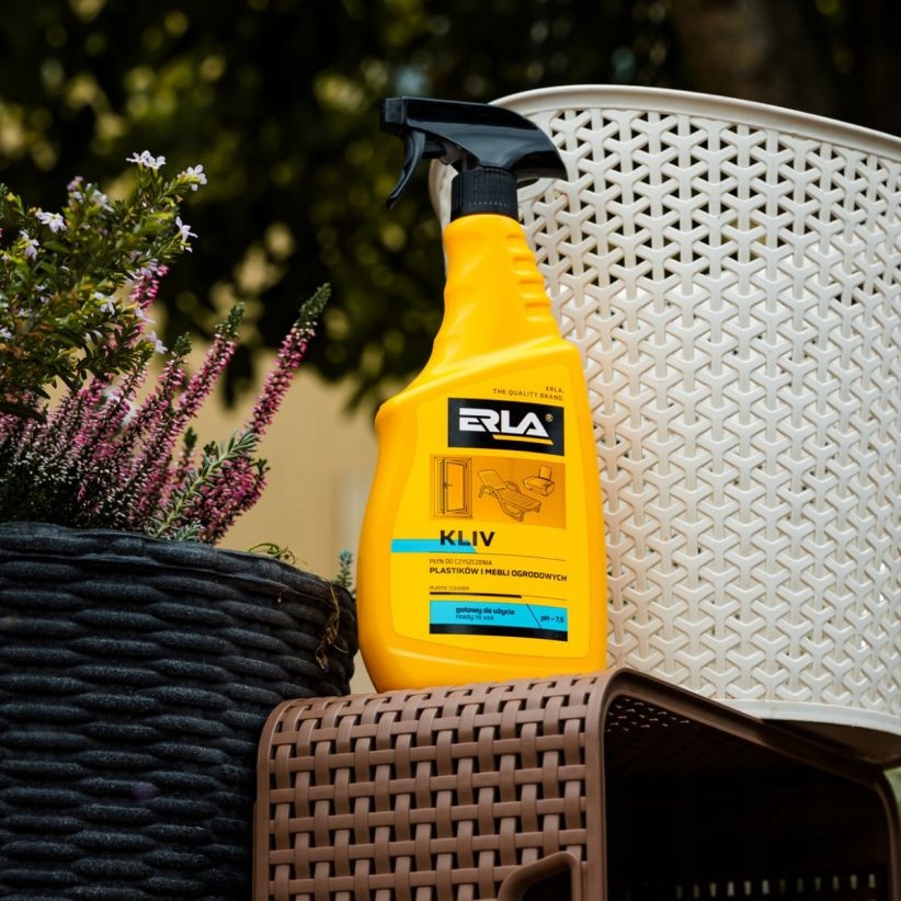 Erla Kliv to profesjonalny środek do czyszczenia plastiku i tworzyw sztucznych, linoleum, gumy, skaju. Doskonały środek do mycia plastikowych mebli ogrodowych, tarasowych i z technoratanu.