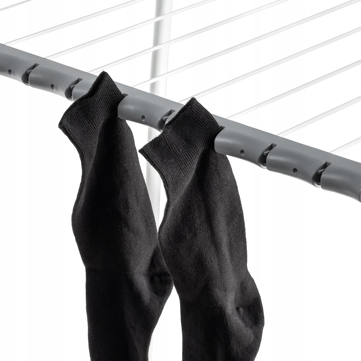 Skarpetki… nie raz bywa to udręką aby wszystkie powiesić tak, aby nie spadały! Teraz nie musisz się o to martwić. Nasza suszarka ma wbudowane specjalne uchwyty na skarpetki, dzięki którym nie będą już spadać, a jednocześnie otrzymujesz dodatkowe miejsce na swojej suszarce, na inne większe rzeczy.