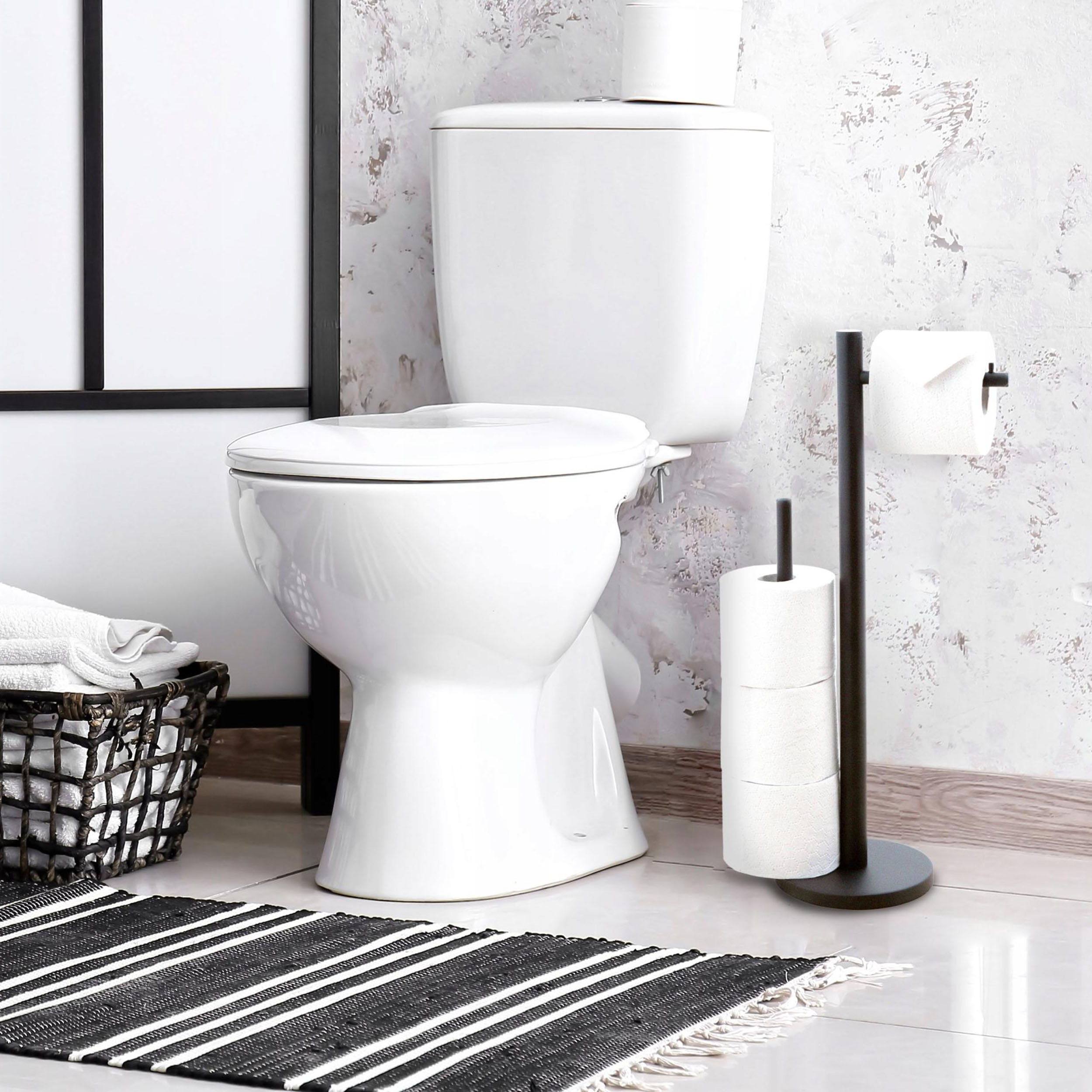 ? Elegancki stojak na zapasowy papier toaletowy – stylowe rozwiązanie, które doda charakteru Twojej łazience! Wykonany z wysokiej jakości stali malowanej proszkowo, ten nowoczesny stojak łączy w sobie elegancję i funkcjonalność. Jego czarny, matowy kolor wprowadza do wnętrza odrobinę luksusu, idealnie komponując się z minimalistycznymi aranżacjami. Dzięki solidnej konstrukcji i trwałym materiałom, stojak jest nie tylko estetyczny, ale i praktyczny – doskonale sprawdzi się w codziennym użytkowaniu. Ożyw swoją łazienkę i dodaj jej szyku dzięki temu wyjątkowemu akcesorium! ?✨