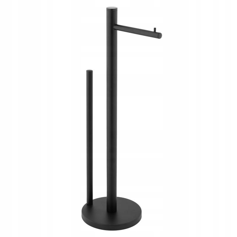 STOJAK ŁAZIENKOWY Z UCHWYTEM NA PAPIER CZARNY MAT ORAZ MIEJSCEM NA ZAPAS PAPIERU TOALETOWEGO