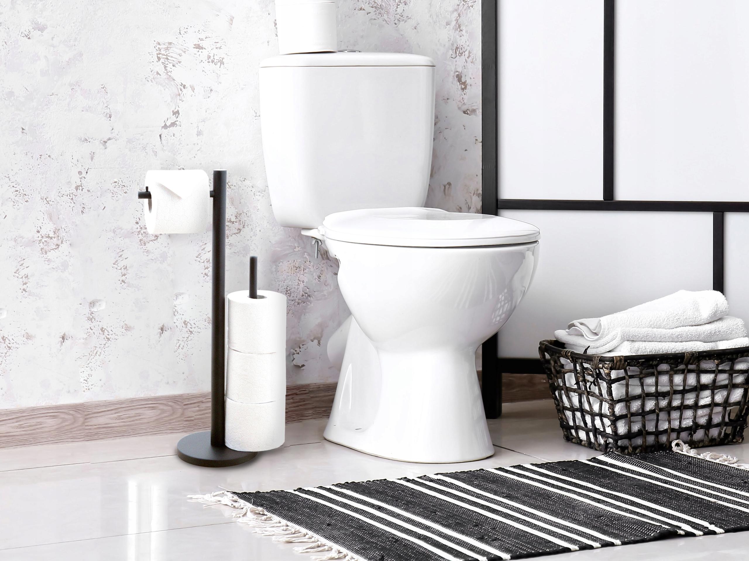 STOJAK ŁAZIENKOWY CZARNY MAT TOALETOWY Z MIEJSCEM NA ZAPAS UCHWYT NA PAPIER