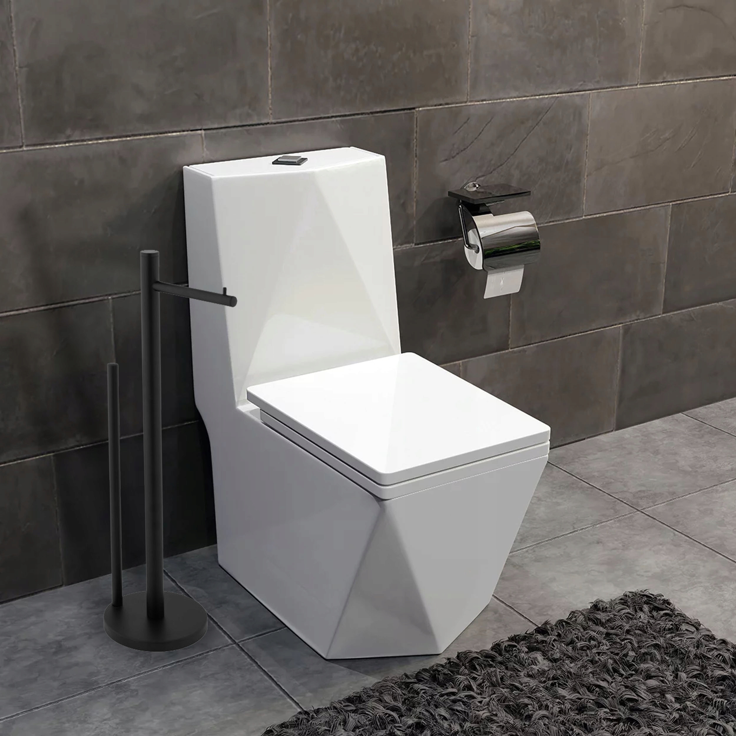 STOJAK ŁAZIENKOWY Z UCHWYTEM NA PAPIER CZARNY MAT ORAZ MIEJSCEM NA ZAPAS PAPIERU TOALETOWEGO