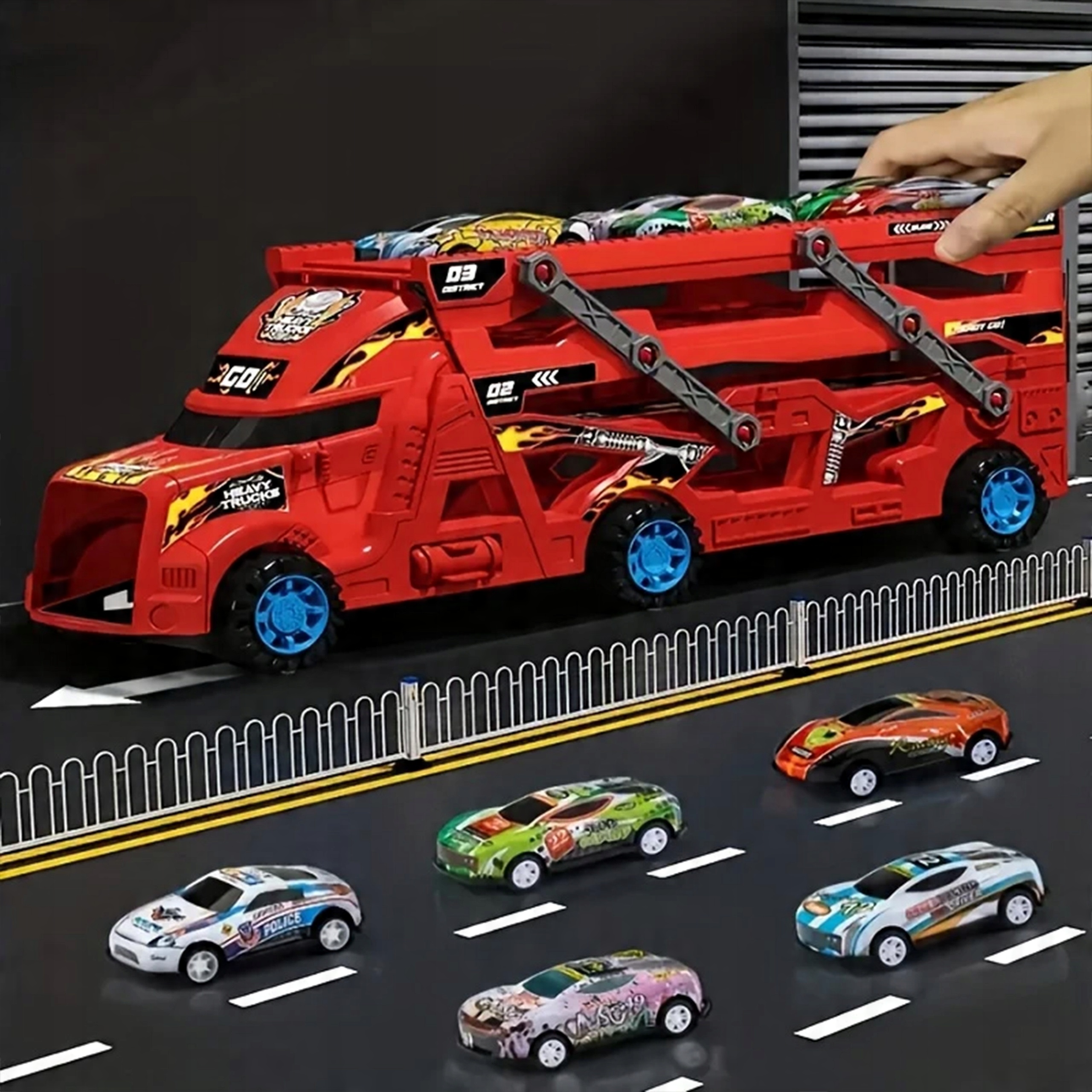 - ? Rozpocznij wyścig pełen emocji z naszym niezwykłym zestawem zabawkowych samochodzików i tira z wyrzutnią!