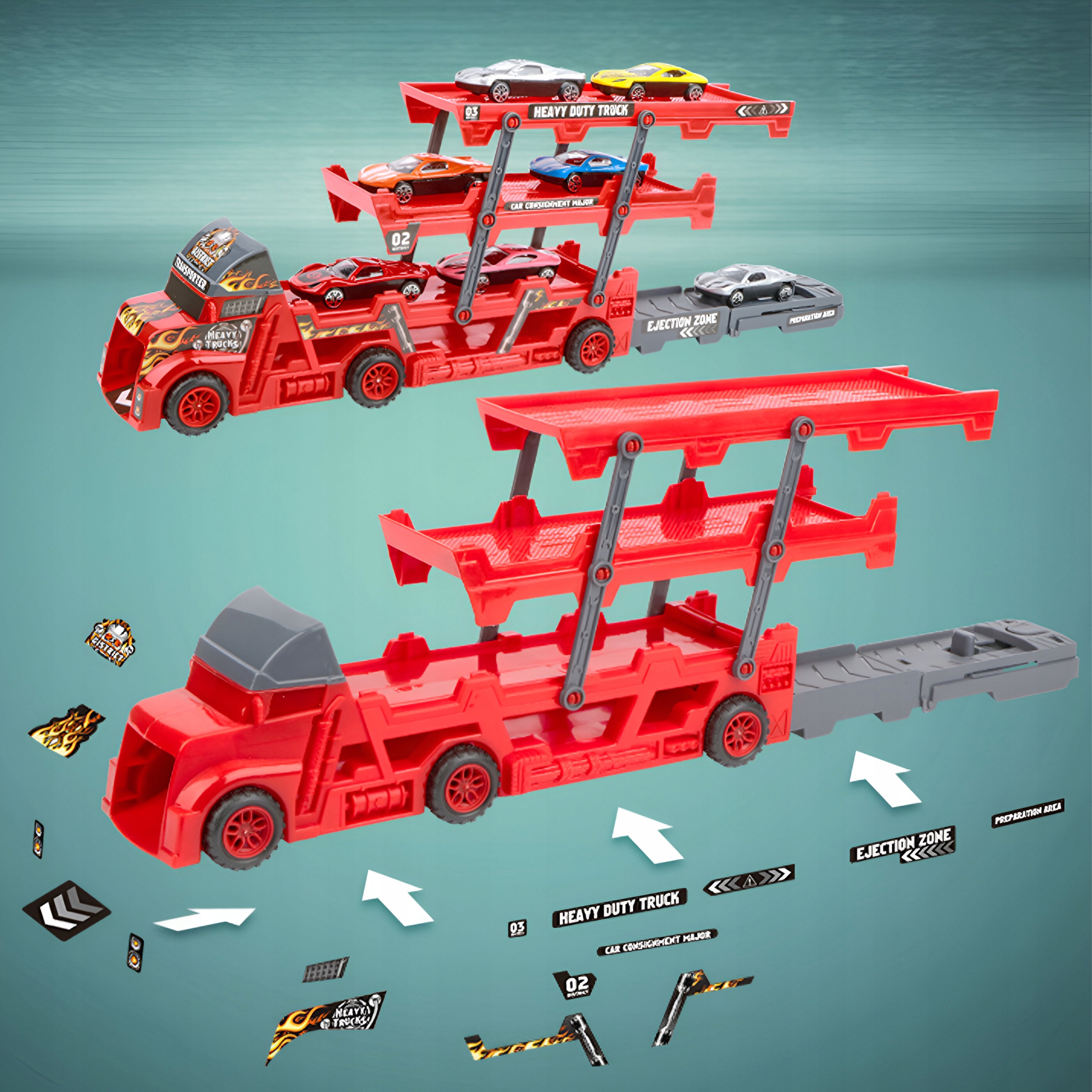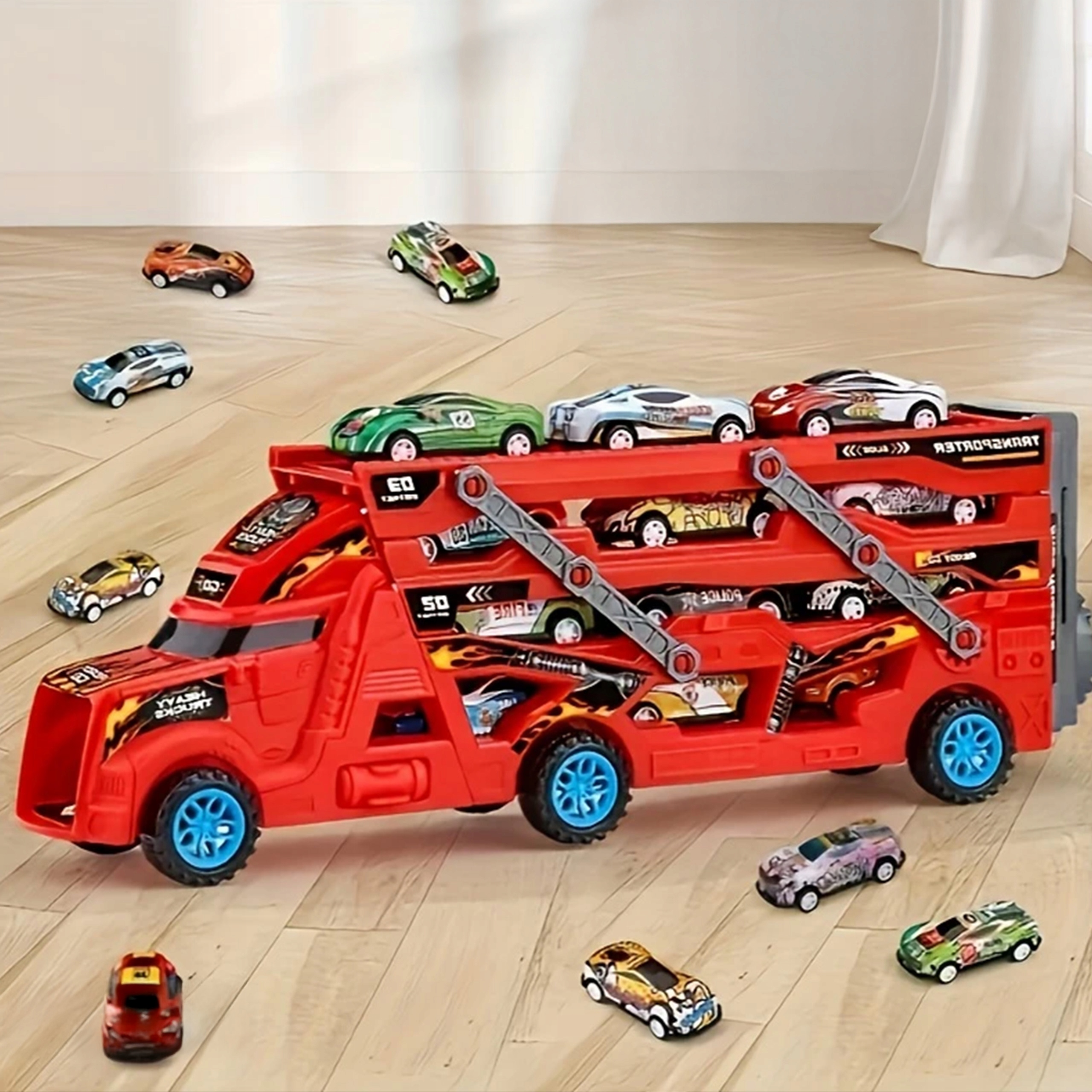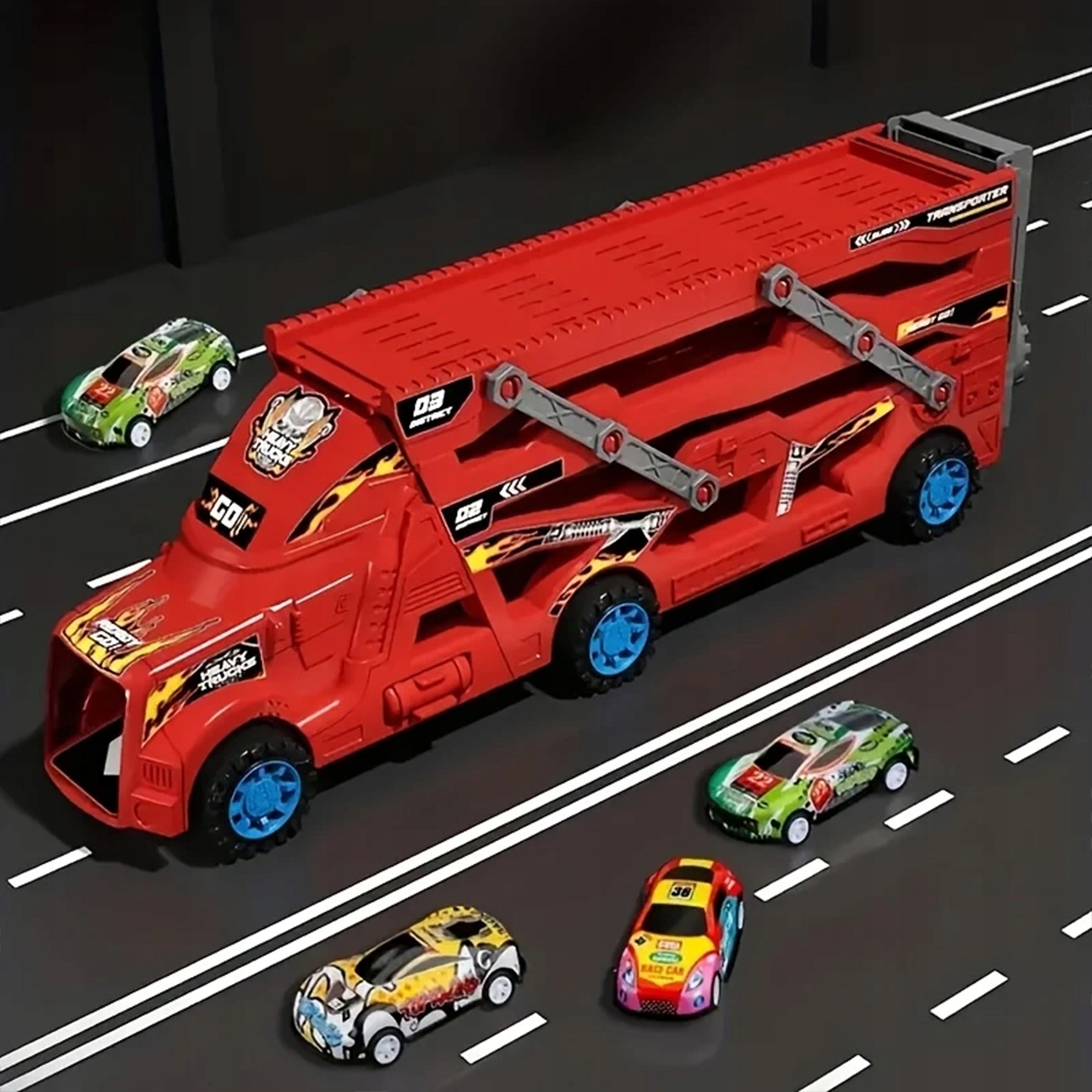 • ? Przenieś swoje samochodowe doświadczenia na wyższy poziom! Zestaw zawiera 3-poziomową lawetę z 6 samochodzikami, które można przechowywać i przewozić bezpiecznie, zawsze gotowe na kolejną wyścigową trasę!