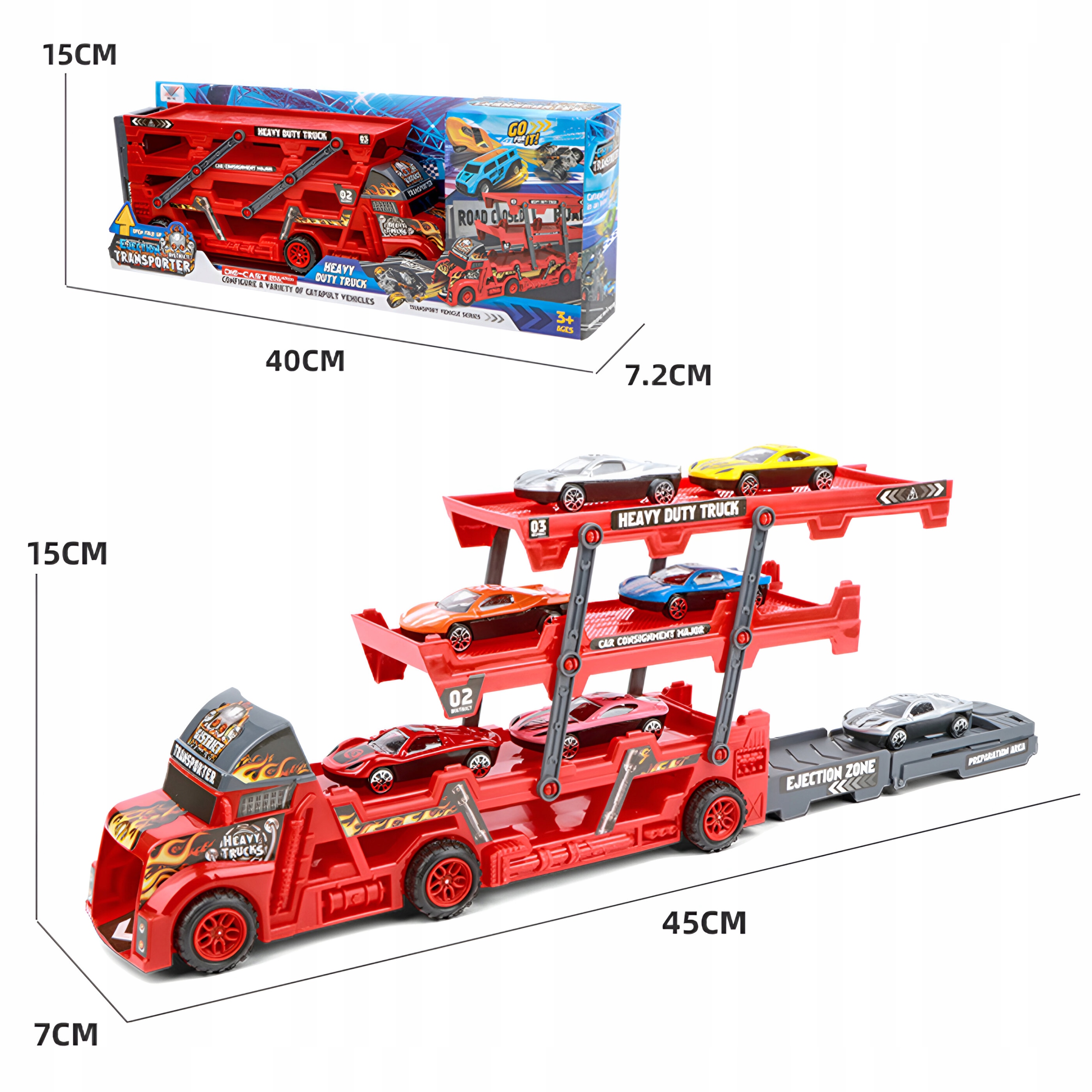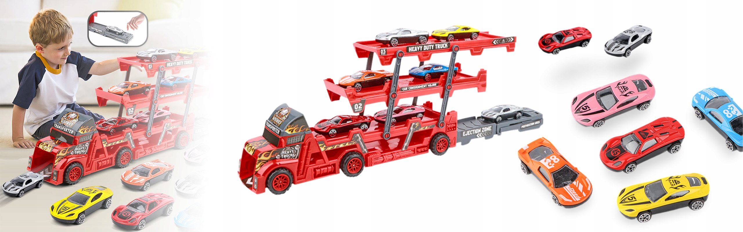 • ? Rozpocznij wyścig pełen emocji z naszym niezwykłym zestawem zabawkowych samochodzików i tira z wyrzutnią!