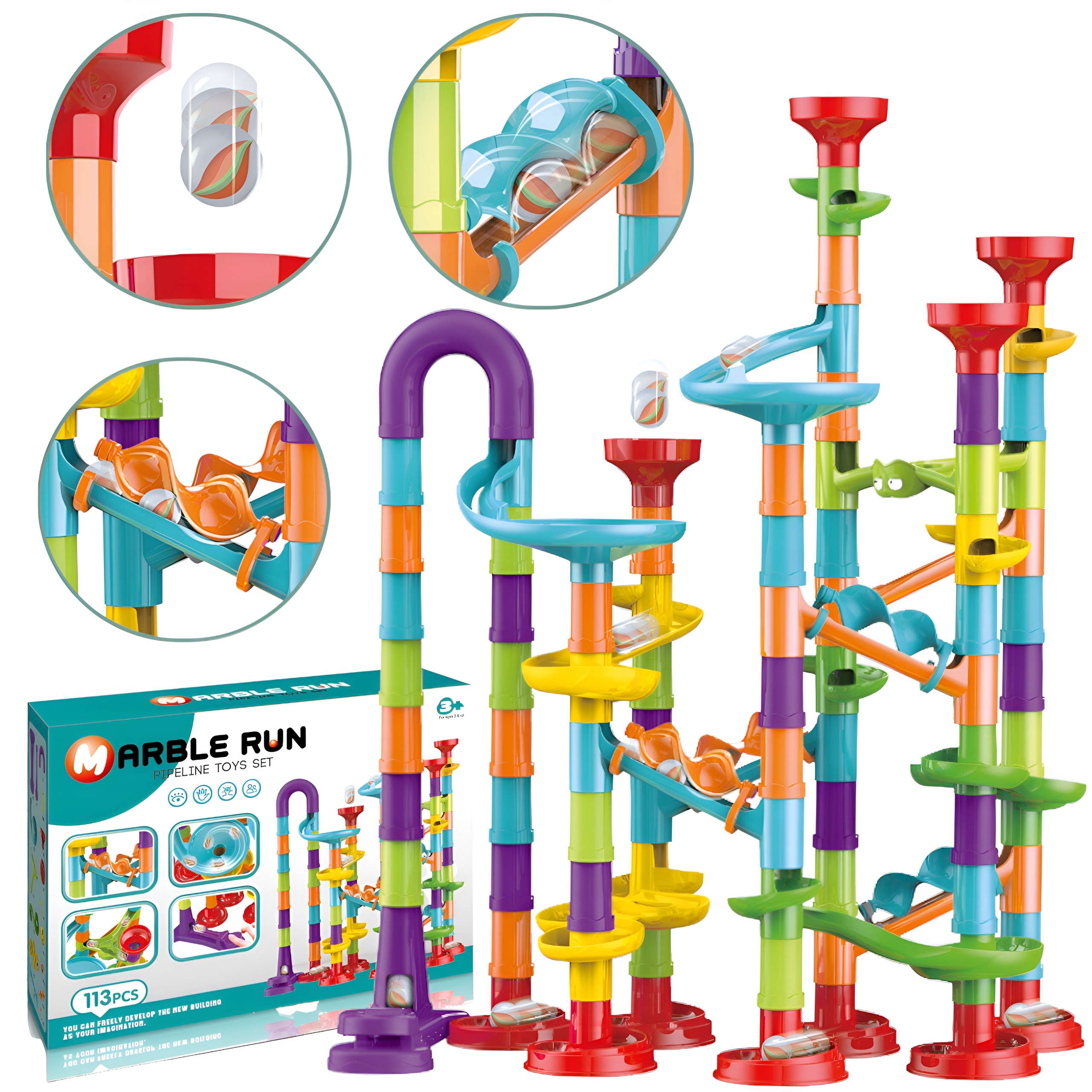 DUŻY TOR KULKOWY 113el KULODROM ZJEŻDŻALNIA KULKI EDUKACYJNA ZABAWKA DZIECI