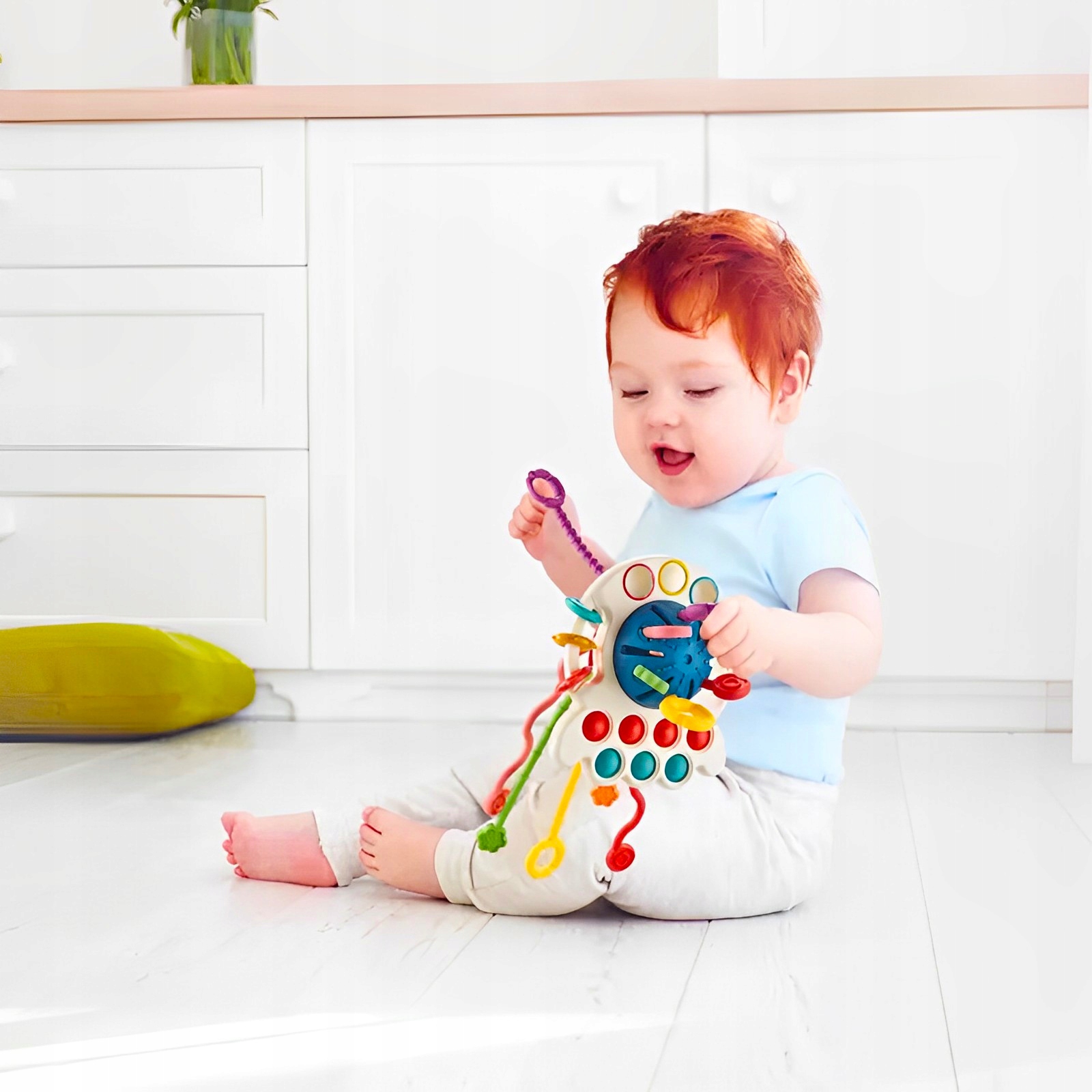 ⭐ Sensoryczna Zabawka dla Niemowląt „Pociągnij za Szurek” ⭐