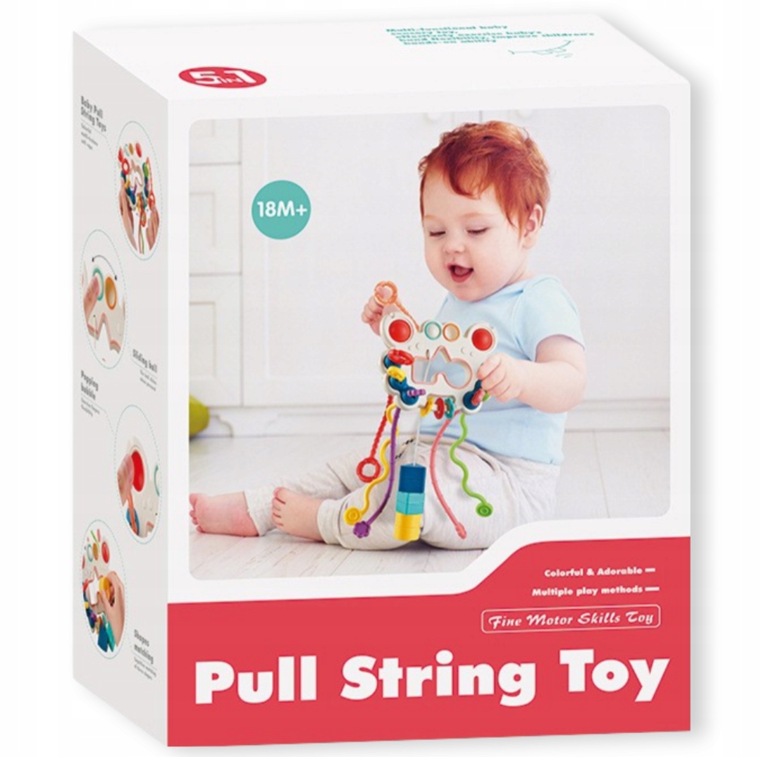 Stymulacja zmysłów: Zabawka generuje różnorodne dźwięki i wibracje przy przeciąganiu sznurków, wspierając rozwój zmysłów dziecka w kreatywny sposób.