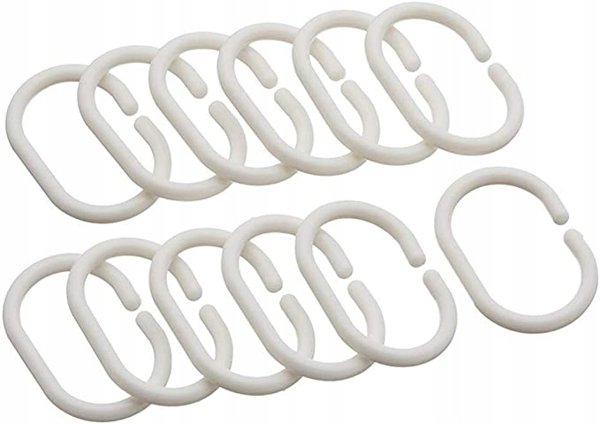 W komplecie otrzymujesz 12 wytrzymałych haczyków typu C, które umożliwiają szybki i stabilny montaż zasłonki bez dodatkowych zakupów.