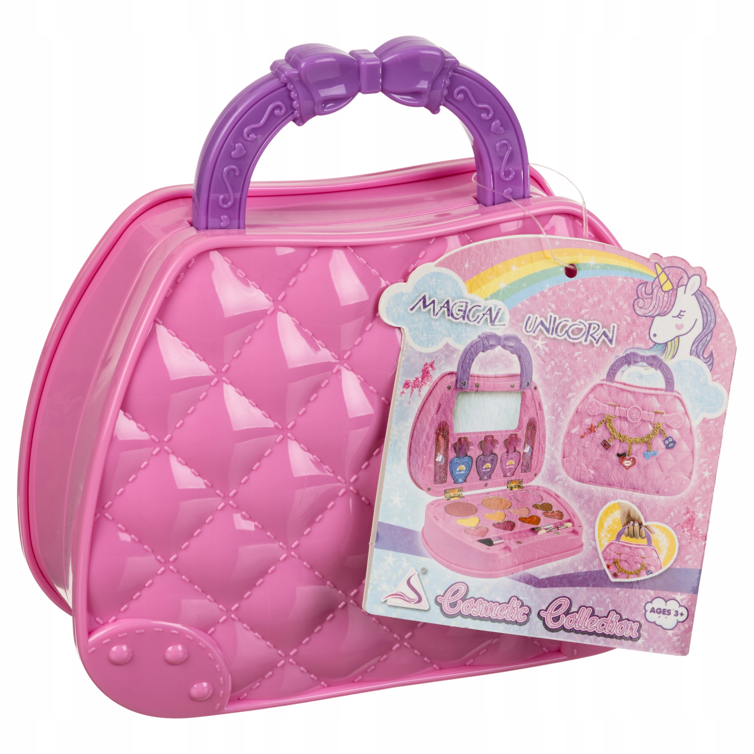 - Zestaw kosmetyków w eleganckiej torebce: Magiczna kraina kolorów i możliwości dla małych artystów.