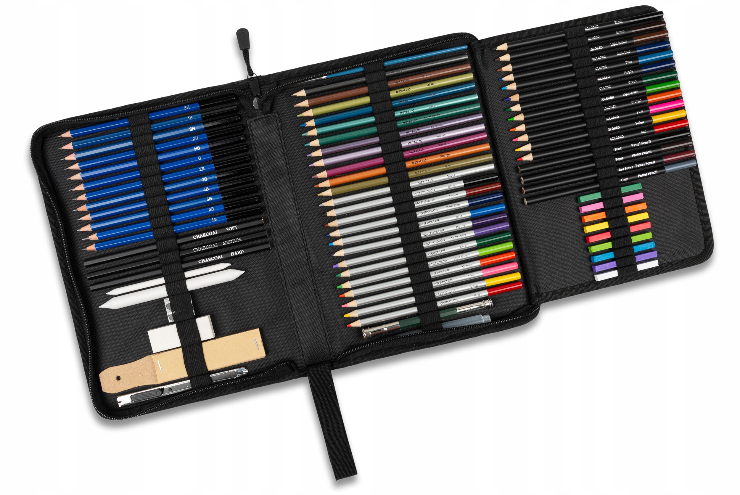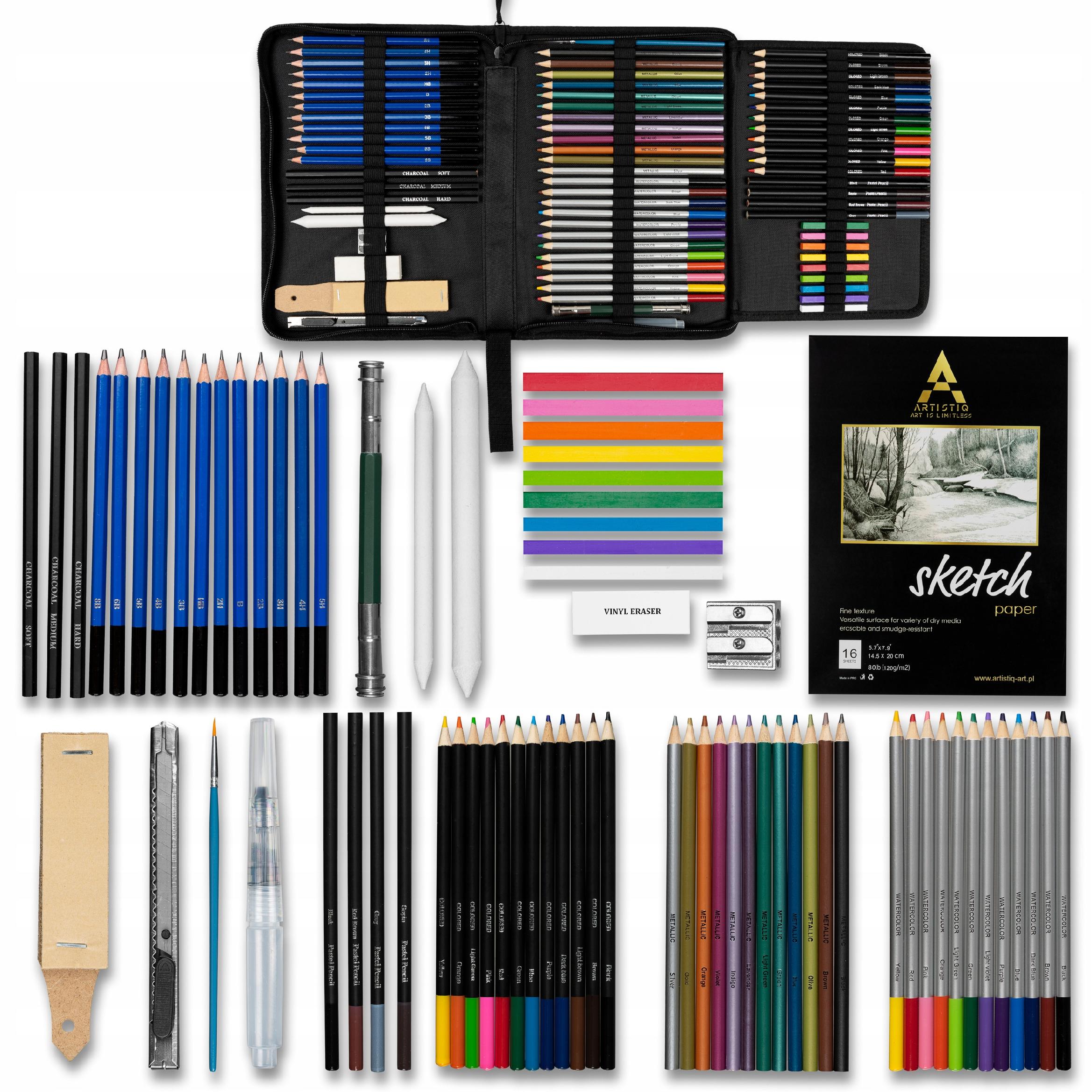 ✅ Profesjonalny zestaw przyborów, ołówków i kredek do szkicowania.