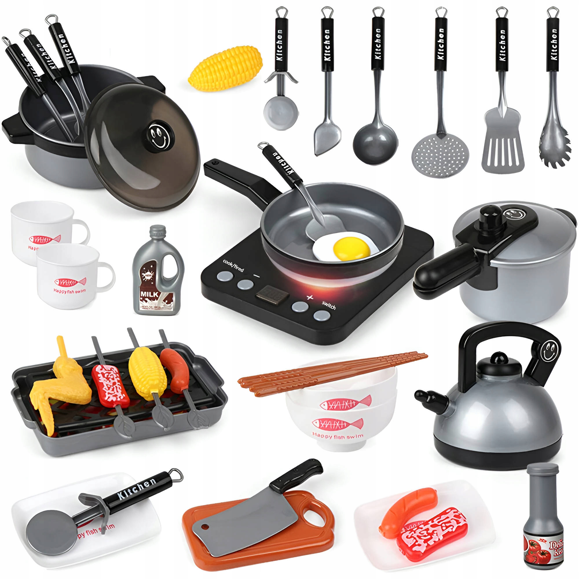 DUŻY ZESTAW KUCHENNY DLA DZIECI GARNKI PATELNIA GRILL AKCESORIA EDUKACYJNE