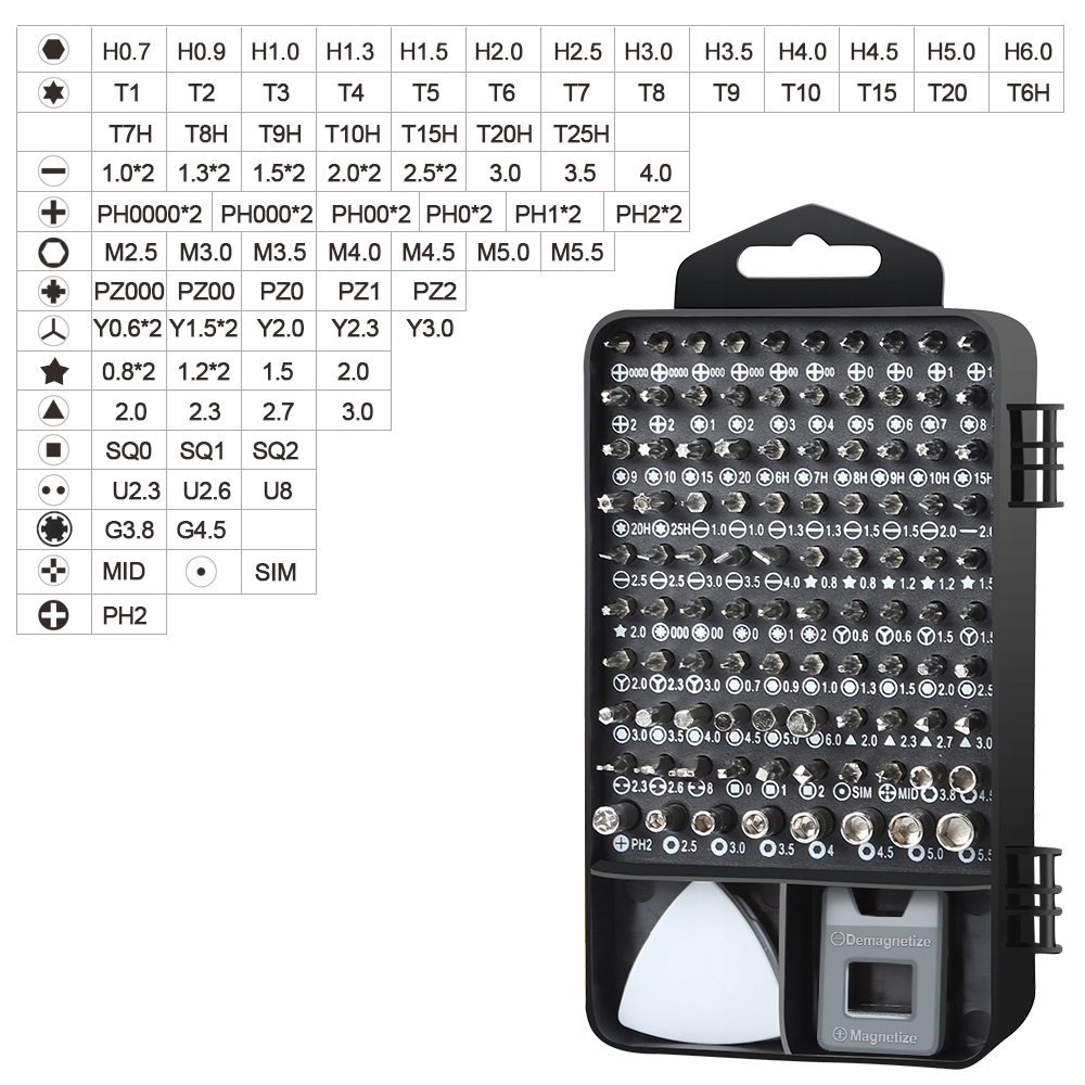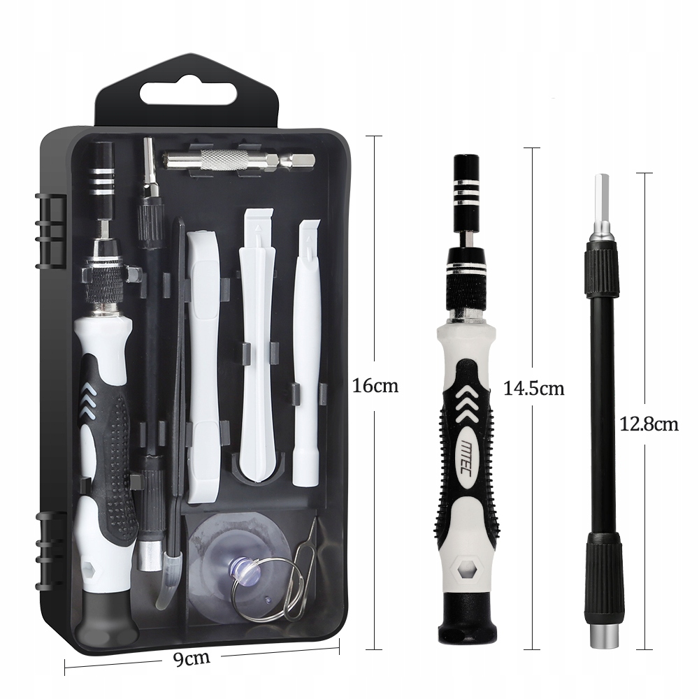 Zestaw 117 elementów – w zestawie znajduje się 117 różnych narzędzi wykonanych z wysokiej jakości stali CrV. Tak bogaty zestaw sprawia, że podczas naprawy nie zaskoczy Cię brak jakiejkolwiek końcówki.