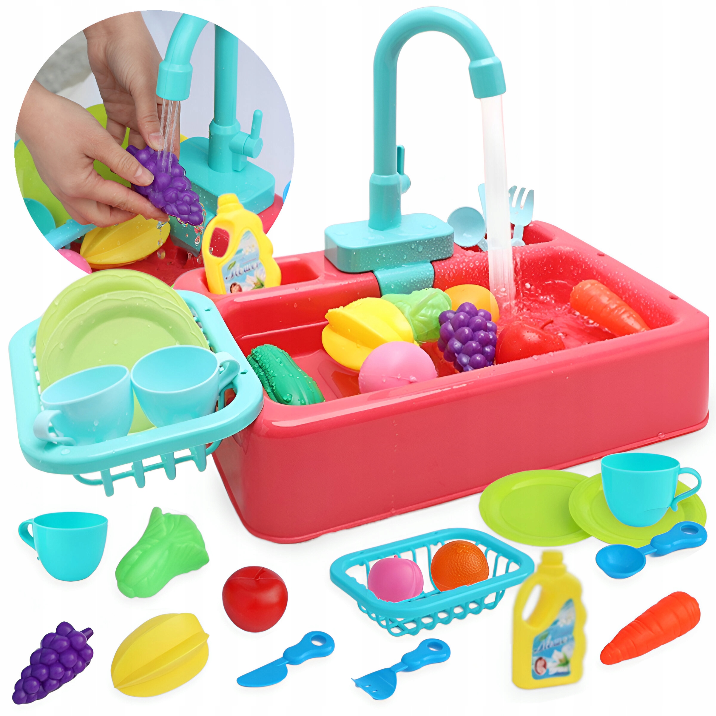 ZLEWOWZMYWAK DLA DZIECI ZLEW DO MYCIA NACZYŃ INTERAKTYWNY NA WODĘ AKCESORIA